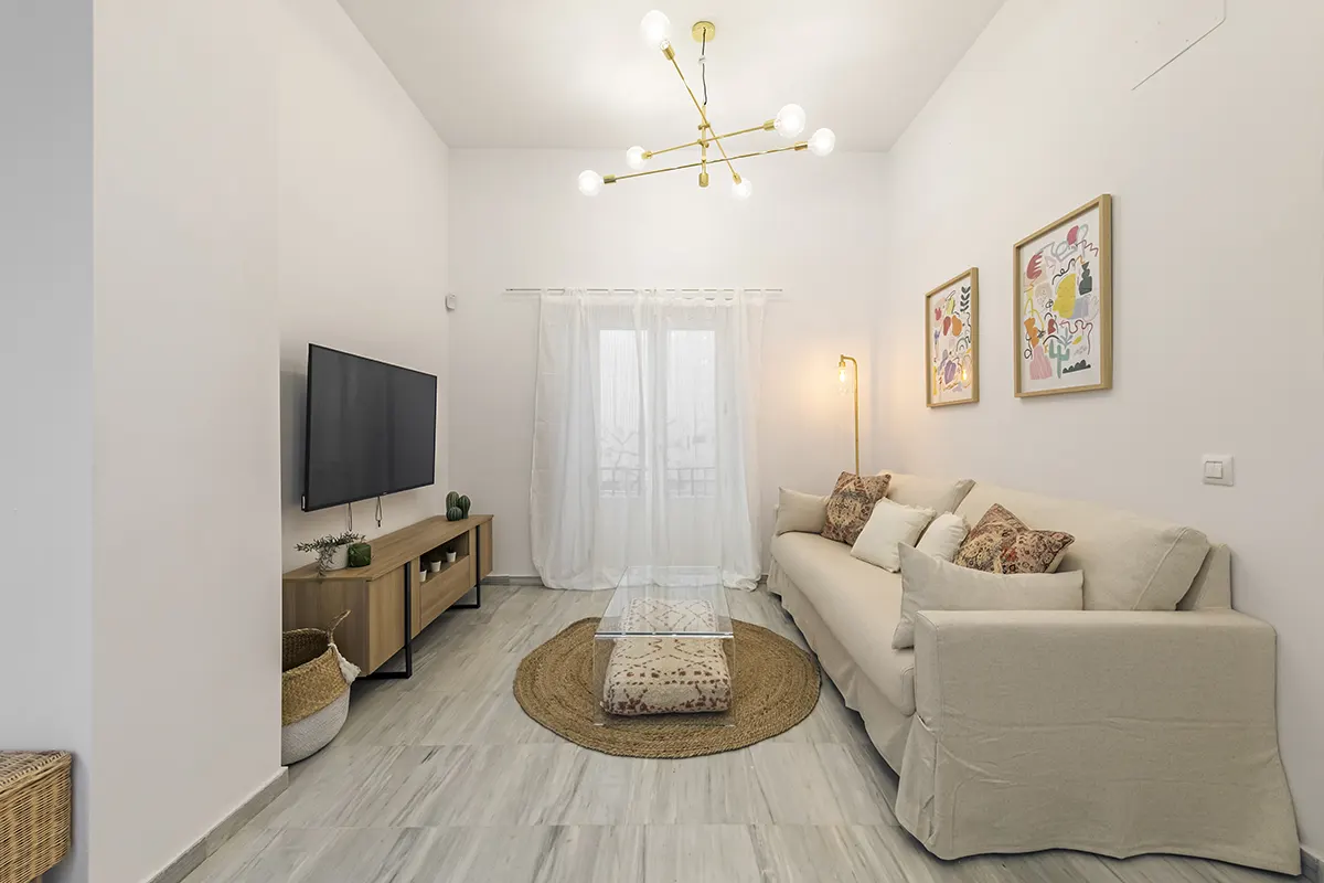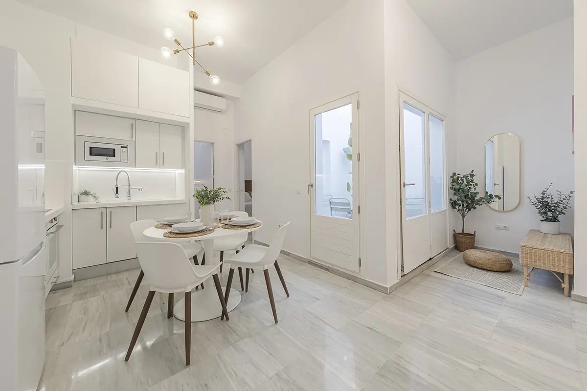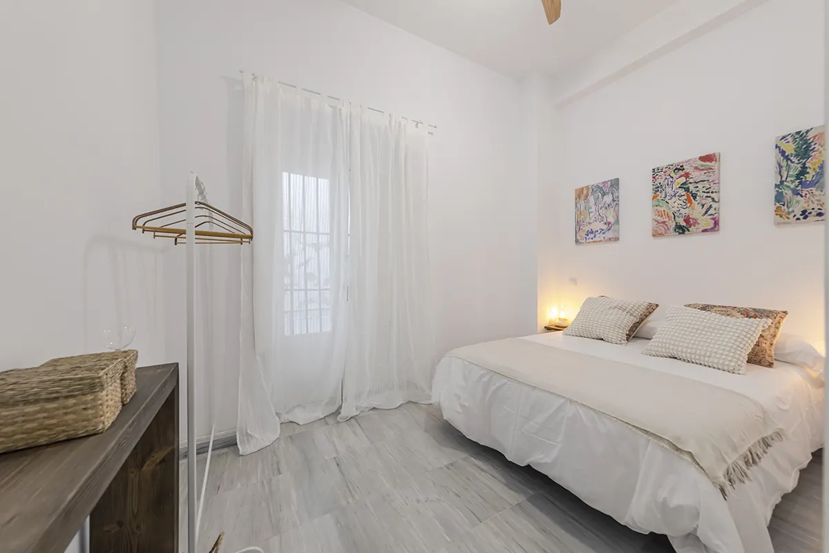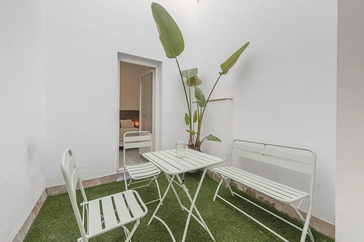 Amplio y luminoso apartamento compuesto de 1 dormitorio, 1 baño con ducha, cocina, comedor y terraza interior accesible desde la habitación y el salón. Acabados de alta gama y mobiliario elegante.